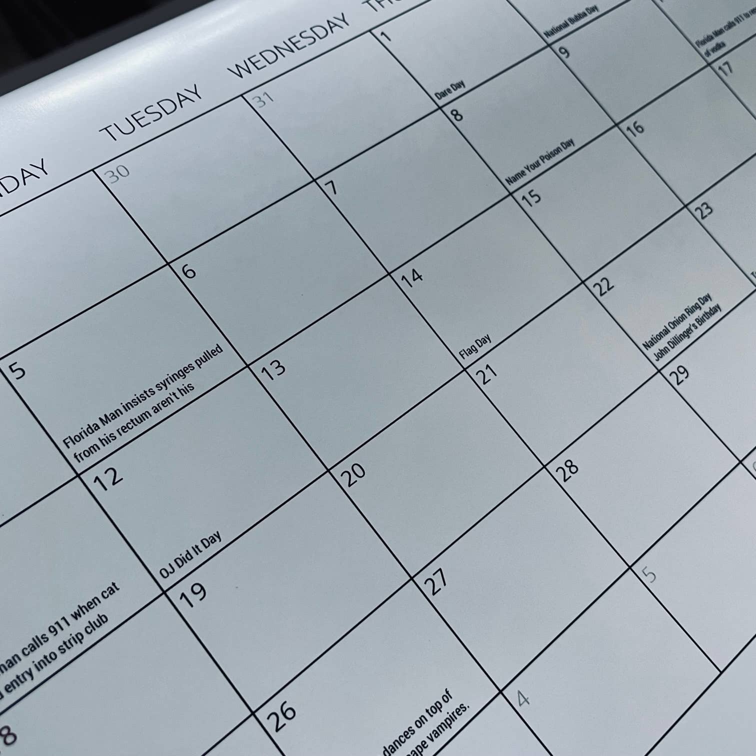 Presenting another years worth of convicts and troublemakers, and filled with even more snarky and odd holidays (on top of the normal ones)! This calendar is landscape design 11" x 8.5" closed, and hanging wall calendar open 17" (the size of two pieces of paper). We will have limited in stock available, basically until we run out or until Dec 31, 2025, whichever comes first. Get your orders in now!!