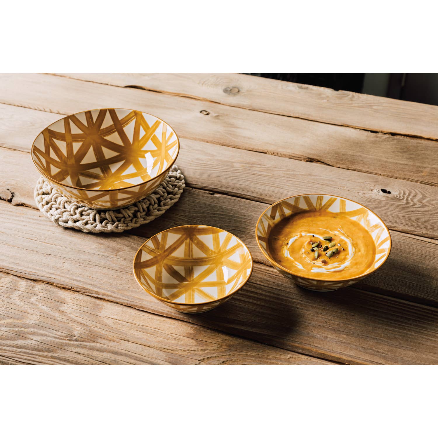 Boasting a pattern inside and out, this Imperial Crosshatch Stamped large bowl harmonizes with the other Danica Heirloom collections. Crowned with a hand-painted rim, this beautiful, stackable bowl is destined to become an everyday favorite.