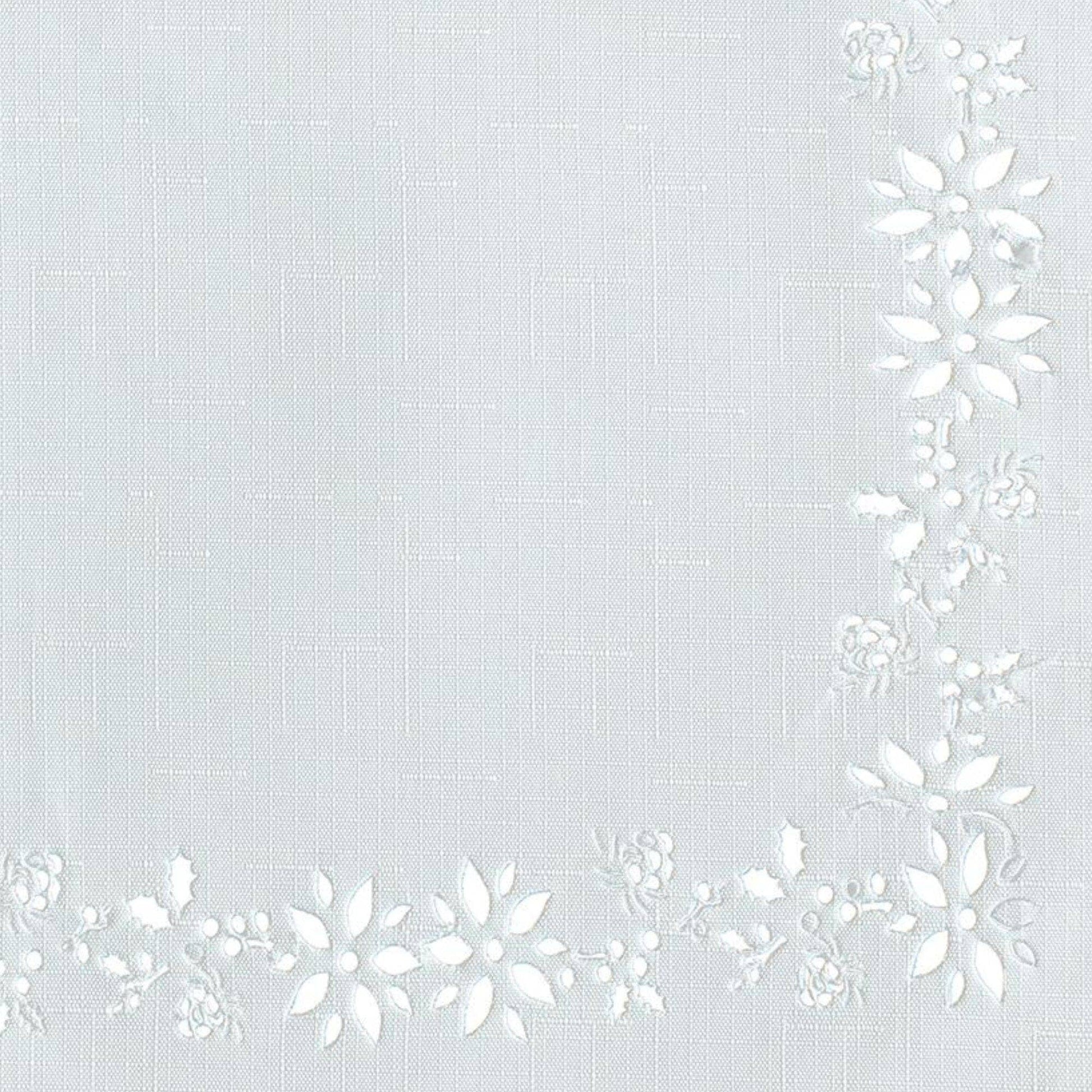 Holiday traditions meet modern elegance in our stunning Poinsettia Noel Laser-Cut Border Napkin Set. Crafted with precision using state-of-the-art laser-cutting technology, each napkin in this set of four features a delicate poinsettia flower and holly leaf border that helps to bring the essence of the holiday season to any table setting. Excellent for special occasions, events, Christmas parties, family gatherings and everyday use during the winter months. Made from 100% high-quality polyester, and available in two colorways - cranberry red and ivory - these reusable napkins are not only beautiful but also durable, featuring hemmed edges to ensure they withstand the joys of countless holiday seasons to come. Machine washable and dryer safe for easy care. Coordinate to the Poinsettia Noel Laser-Cut Border tablecloth and placemat set to complete the look.